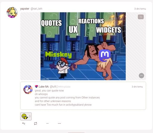 arrow-up1178arrow-down1imagePiefed has one built-in, Voyager has it client side, there are probably other apps too, feel free to share your list in the commentsplus-squarei.imgflip.comBlaze (he/him)@piefed.zipEnglish · 12 days agomessage-square36linkfedilink