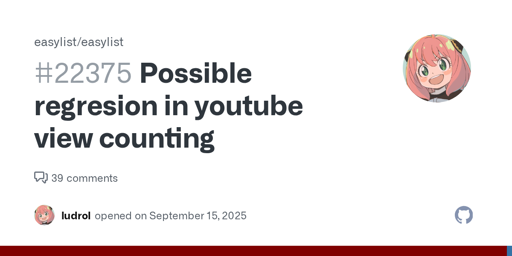 Explanation and data(not mine): https://www.youtube.com/watch?v=YX1eEe8erkQ commit made on 2025-09-11 3:44 UCT that has high likelihood of correlation with drop in views as it's one of default bloc...