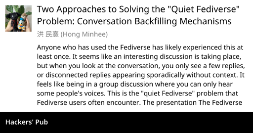 This post addresses the "quiet fediverse" problem, where users encounter fragmented conversations with missing replies in decentralized social networks. It explores the underlying causes related to the distributed nature of the ActivityPub protocol, which scatters conversations across different servers. The author delves into two primary approaches to solve this issue: reply tree crawling and the context owner-based method. Reply tree crawling involves fetching all replies to reconstruct the conversation, while the context owner method relies on a designated owner to manage and provide the complete conversation. The post examines the technical mechanisms, advantages, and disadvantages of each approach, including real-world implementations and ongoing debates within the fediverse community. It also touches on additional backfill mechanisms like periodic crawling, user-triggered backfills, and mention-based discovery. Ultimately, the author advocates for a hybrid approach that combines multiple strategies to enhance conversation completeness and user experience, highlighting the importance of ongoing standardization efforts and collaborative implementations within the fediverse. This article provides valuable insights into the challenges and potential solutions for creating a more connected and coherent social networking experience in decentralized environments.