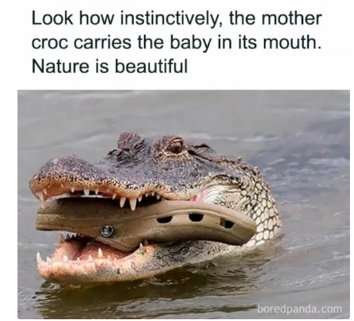 It depends. If you see them later, it’s an alligator. If you see them in a while, it’s a crocodile.