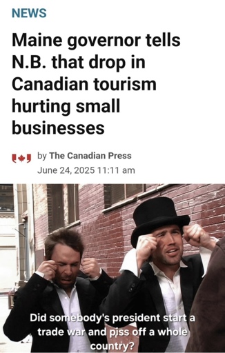 We’ve just held one of the largest protests in American history, dozens of citizens have put themselves in danger to try to stop masked ICE thugs from abducting their neighbors, the city of LA is still under occupation by the marines, and four politicians have been arrested for opposing the regime, but yeah, we weren’t able to change tariff policy, so we’re barely doing shit. I mean, the tariff policy did change multiple times because of public outcry, but still, great point dude. Here I thought you were just too stubborn to admit you didn’t know shit about Maine or its governor when you made the meme, but now I see how deep and insightful you really are.