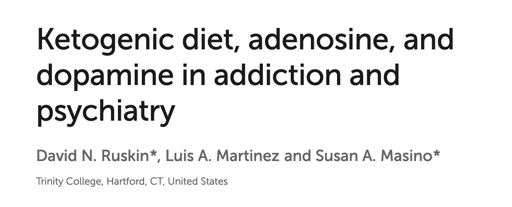 Adhering to the ketogenic diet can reduce or stop seizures, even when other treatments fail, via mechanism(s) distinct from other available therapies. These results have led to interest in the diet for treating conditions such as Alzheimer’s disease, depression and schizophrenia. Evidence points to the neuromodulator adenosine as a key mechanism underlying therapeutic benefits of a ketogenic diet. Adenosine represents a unique and direct link among cell energy, neuronal activity, and gene expression, and adenosine receptors form functional heteromers with dopamine receptors. The importance of the dopaminergic system is established in addiction, as are the challenges of modulating the dopamine system directly. A mediator that could antagonize dopamine’s effects would be useful, and adenosine is such a mediator due to its function and location. Studies report that the ketogenic diet improves cognition, sociability, and perseverative behaviors, and might improve depression. Many of the translational opportunities based on the ketogenic diet/adenosine link have come to the fore, including addiction, autism spectrum disorder, painful conditions, and a range of hyperdopaminergic disorders.