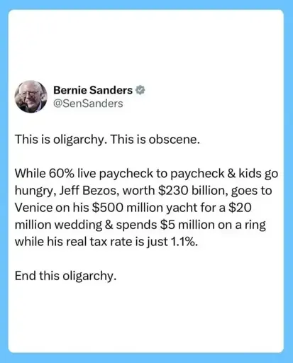 Even if we tax Jeff bezos 30% realistically it won’t make any difference because Trump and his cronies will just blow it on an even more ridiculous ICE budget or build more concentration camps or bomb Iran again.