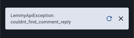 I’ve had three comments in my inbox for about a week and every day I try to mark them as read, but it doesn’t work. They disappear from the list at first, but then when I refresh they’re still there. I get the error in the picture which says, LemmyApiException: couldnt_find_comment_reply