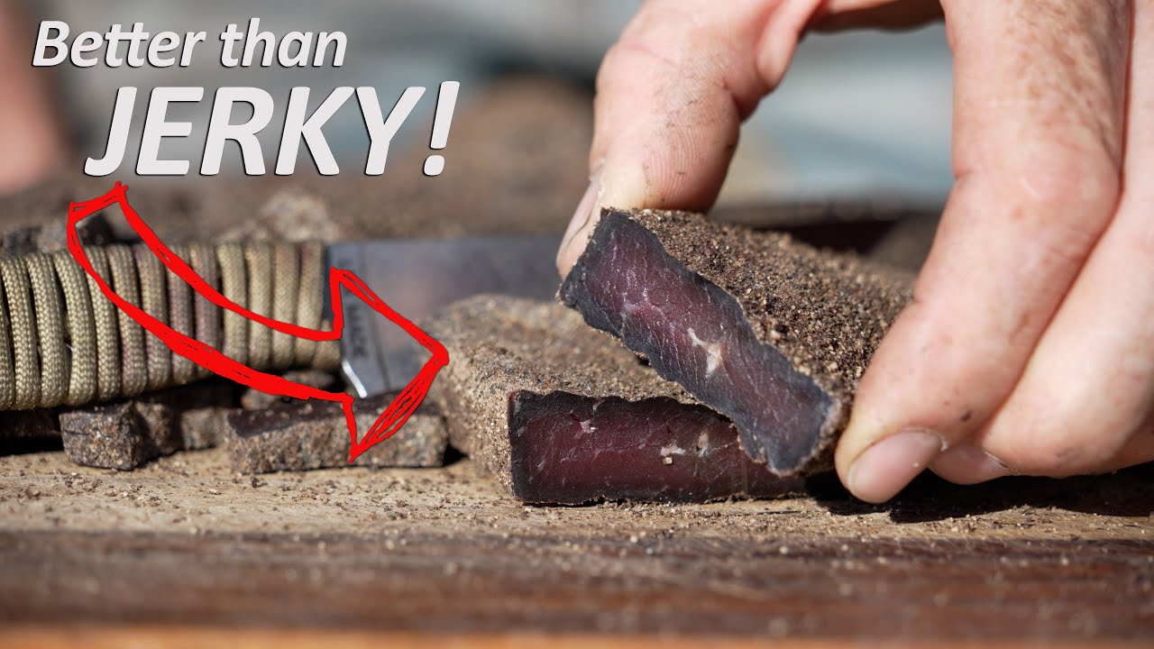 The video explores traditional meat preservation through making bilong, a South African dried meat product distinct from typical jerky. The presenter emphasizes the importance of preserving meat in survival or wilderness scenarios, where food resources are unpredictable and often abundant only temporarily. Unlike jerky, which is sliced thinly across the grain, bilong is cut with the grain into thicker strips, resembling dried steak. The process involves marinating the meat briefly in a vinegar wash, seasoning it heavily with salt, coriander, and black pepper, and then air-drying it. The black pepper serves both as a flavor enhancer and as a deterrent to insects such as flies and yellow jackets, which can be particularly problematic during summer drying.
