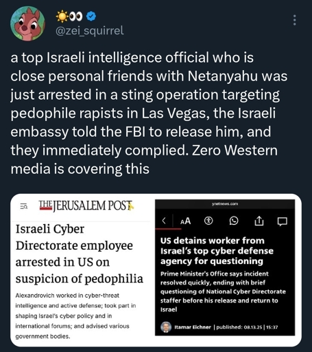 Top Israeli gets arrested for Pedophelia in Las Vegas. Instantly gets released. https://www.jpost.com/israel-news/article-864370