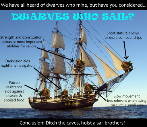 I like the mental image of a dwarf ship that’s 6 ft tall and got 47 masts to make up for it.