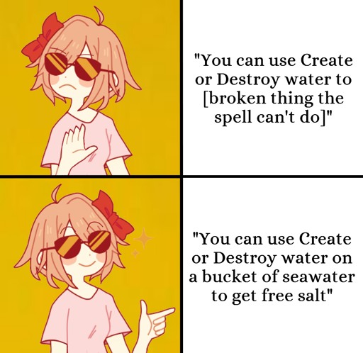 if this works like i think it does, i’ll get something that lets me craft bags of holding, and i’ll just spend the rest of every day (after casting destroy water) crafting bags of holding to throw into the ocean
