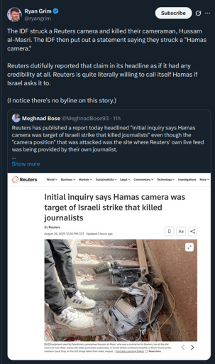 arrow-up124arrow-down1imageReuters says Reuters is Hamaslemmy.mlgeneva_convenience@lemmy.mlM to Manufacturing Consent@lemmy.ml · 1 month agomessage-square3linkfedilinkcross-posted to: fediverse_vs_disinfo@lemmy.dbzer0.compalestine@lemmy.dbzer0.compalestine@lemmy.ml