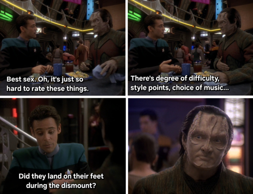 ‘humans and cardassians can’t be friends because the sex part always gets in the way.’