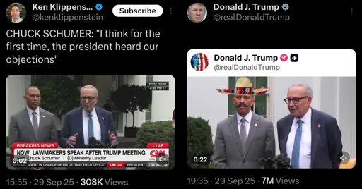 Schumer: “OK, how about this… You get to murder half of all trans people, and we agree to fund the government.”