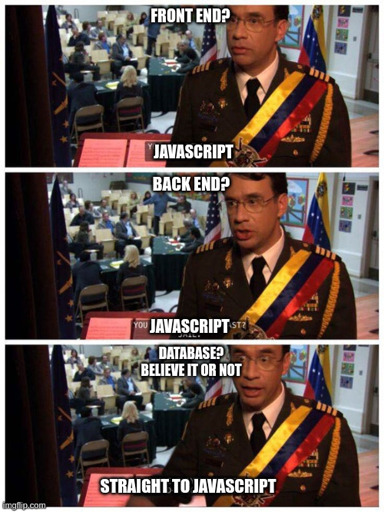 For the longest time (relatively speaking), I would do full stack Javascript (like the meme). But I have to frequently tie into AD/LDAP and the only decent NodeJS library for LDAP is no longer maintained because the community was shitty to the dev. Now I’ve had to venture out into Go (I can’t stand working in Python).