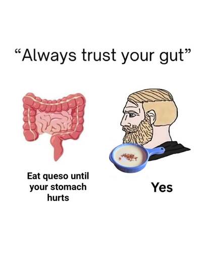 My gut wants me to eat and do all the unhealthy shit until it’s time for my gut to actually deal with all that unhealthy shit.