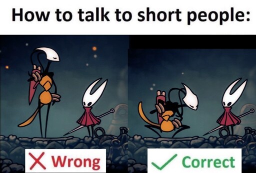 minus-squareJo Miran@lemmy.mllinkfedilinkEnglisharrow-up33arrow-down2·1 month agoNotice the illustration. They maintain proper posture and squat to reach the other’s eye level. No need to hurt your back.