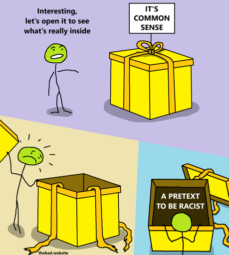[a top down view lets us see what is inside the box] A PRETEXT TO BE RACIST
