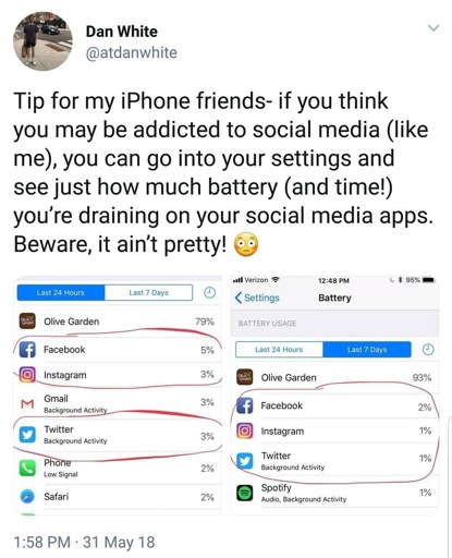 Olive Garden might just be as bad as Uber, where loading it for a short time drains an inordinate amount of battery.