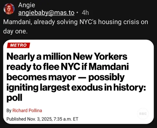 I think NYC is going to have more of a problem of people moving to the city thanks to Mamdani