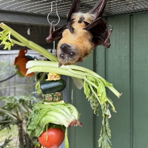 Leaving food in larger chunks at varying heights is a great way to encourage the bats to use their batty brains and muscles.