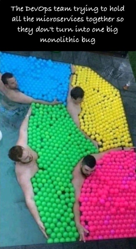I’m so confused by the meme. What the hell is a “monolithic bug”? And what does DevOps have to do with software architecture?