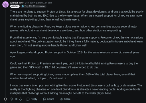The issue isn’t Linux users, but game devs/anticheat devs not putting in the effort to find a proper solution.