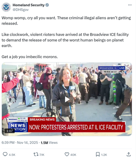 I wonder what racist little edgelord is in charge of the DHS account. They’ve been posting shit like this all year.