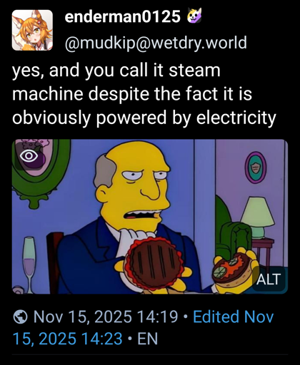 My grid power is sourced from a nuclear reactor. It would literally be steam powered because reactors are glorified steam turbines.