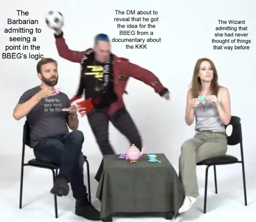 minus-squareDragonTypeWyvern@midwest.sociallinkfedilinkarrow-up1·8 days ago“The Fantasy KKK is right about everything because there’s an inherent intelligence difference in the default stat blocks” See meme above