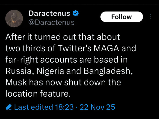 I never said they were. I said they were employing these accounts. But anyway, the oligarchs who rule the US are not all based in the US.