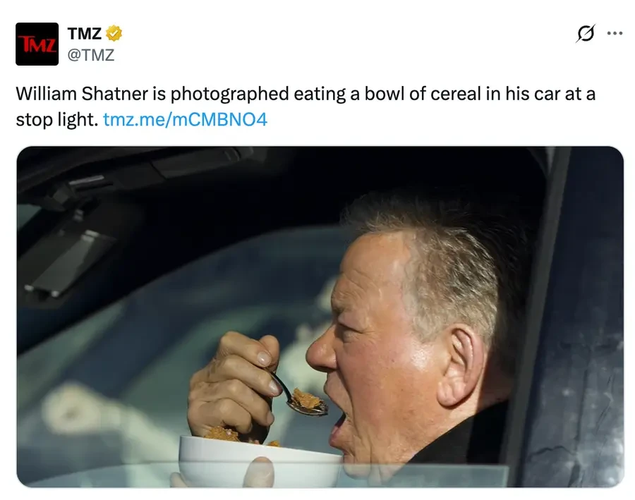 I’m not sure he should be driving at this point, even without eating cereal.
