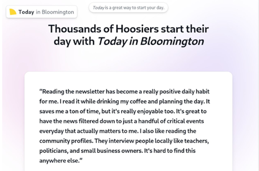 While Bloomington has several outlets that report on pressing issues in the community, the local news landscape is fragmented. Many residents have expressed a desire for a curated summary of local news. A newsletter call Today in Bloomington says it does just that. But is it truly a part of the local news ecosystem?