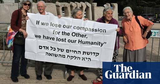 As the country’s most powerful politicians, including the prime minister, Benjamin Netanyahu, attended a ceremony on Thursday morning at Yad Vashem, the Holocaust memorial in Jerusalem, three Holocaust survivors in their 80s stood at the entrance holding a sign aloft: “If we have lost our compassion for the other, we have lost our humanity.”