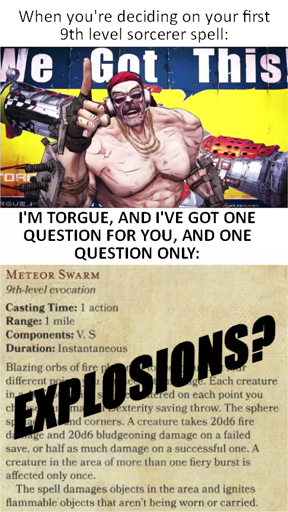 azrendelmare@ttrpg.networkto RPGMemes @ttrpg.network•Rules Lawyer sings every rule in the Players Handbook to get a bonus to one check291·9 months agoGod, can you imagine what a nightmare it would be to play D&D with the Warners? Though as long as you just went with the flow, it’d probably be fine; they only really harass people who are too stuck up.