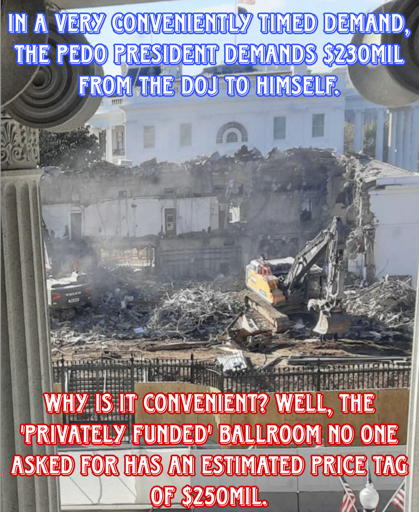 trager_bombs@lemmy.worldOPtoPolitical Memes@lemmy.world•Maybe they'll put up a tent in the meantime since we are ruled by clowns.55·2 days agoEvery day a new pile of shit on the American people that would end the careers/lives of anyone else