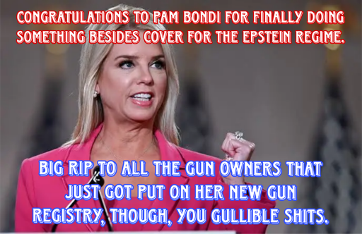 trager_bombs@lemmy.worldOPtoPolitical Memes@lemmy.world•The "Come and Take Em" Crowd once again in shambles.2·10 days agoLots of loud people demanding she be fired and of course the ATF is being flamed a good amount too (just from what I can see). I appreciate your breakdown on this, some interesting ways it can unfold that I wouldn’t have known to watch for. 🤘🏽🖤